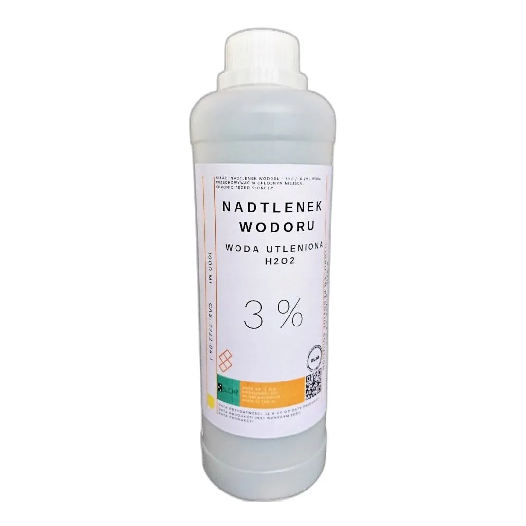 Nadtlenek wodoru 3% jest dostępny w butelce 1000 ml, jego masa molowa wynosi 34,01 g/mol, a temperatura topnienia to -0,43°C.